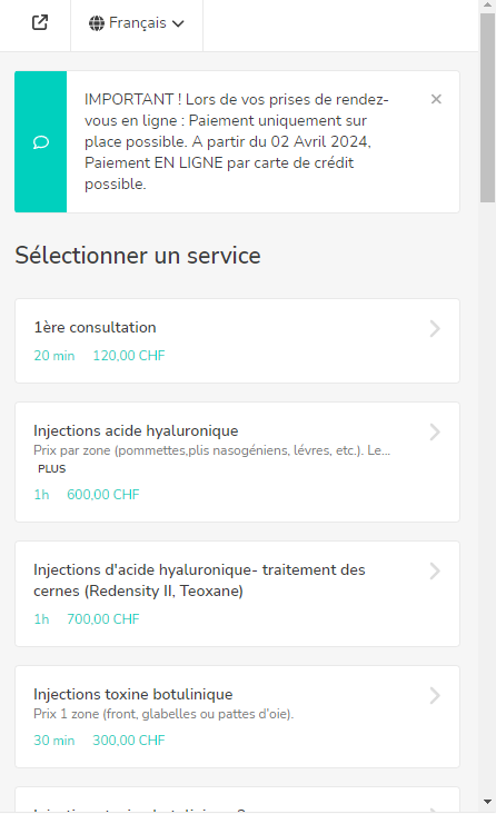 En cas d’annulation du rendez-vous due à une urgence médicale de la part du médecin, un nouveau rendez-vous sera proposé au client.